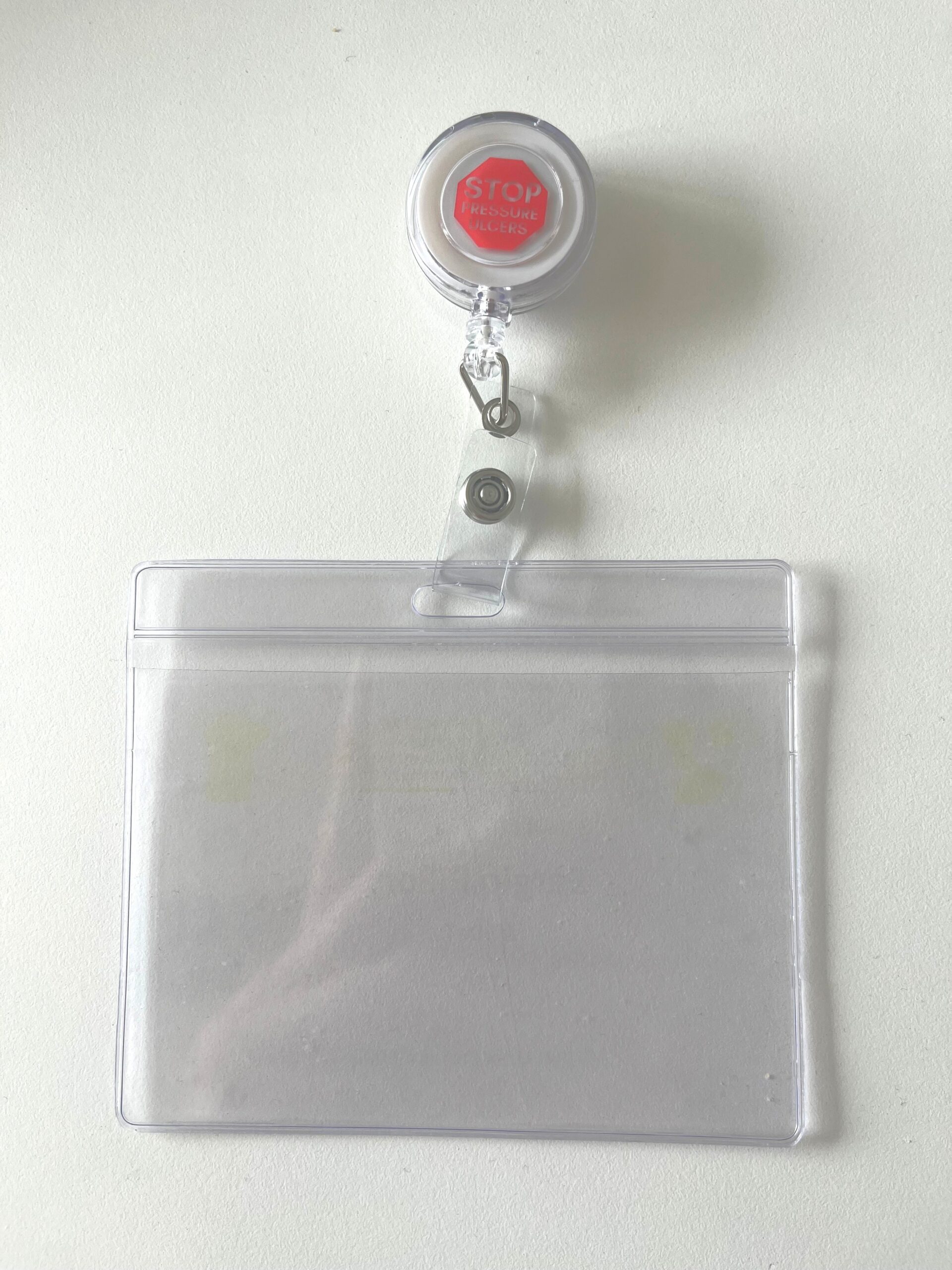 Keep your ID close and your message closer! This STOP Pressure Ulcers badge holder is practical for everyday use in hospitals, clinics, or offices. Easy access to your badge while proudly showing support for prevention! Durable, convenient, and awareness in action. Now 10 holders for €10!